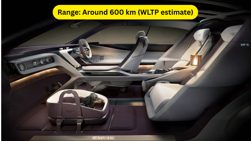 Under the sculpted exterior, the EXP 15 is rumored to house Bentley’s next-generation dual-motor electric setup delivering between 600–700 horsepower. This would position it among the fastest GTs in Bentley’s history—capable of sprinting from 0–100 km/h in under 3.5 seconds.