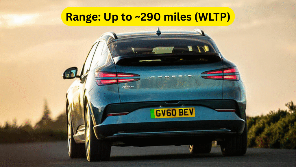 Depending on the variant and driving conditions, the GV60 offers a range of around 270 to 290 miles (WLTP). Real-world figures may vary slightly, but the efficient E-GMP platform ensures excellent energy usage and range reliability.