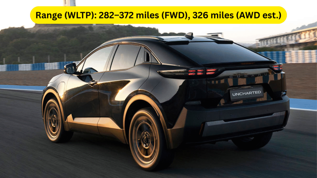 Depending on configuration, the Subaru Uncharted offers between 282 miles (FWD base) and 372 miles (Long Range FWD). The AWD version is expected to cover around 326 miles on a single charge.